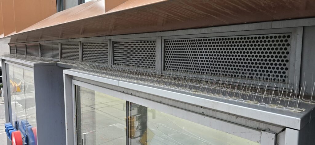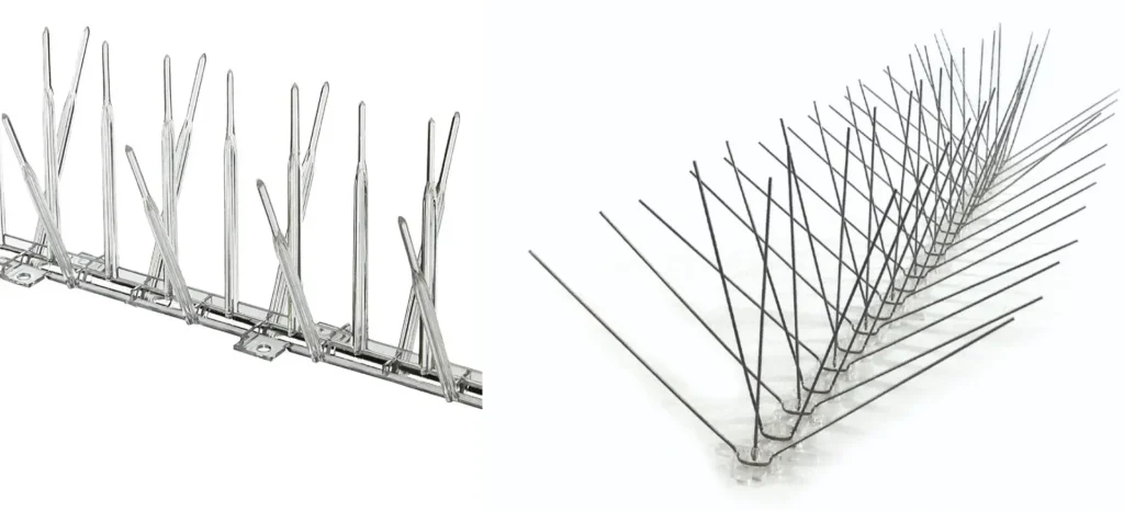 Bird spikes are thin metal or plastic strips with upright rods designed to make landing impossible. They don’t harm birds—they simply prevent them from roosting or nesting on surfaces.