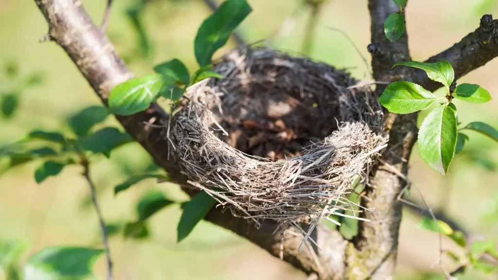 Reflective tape, predator decoys, or noise machines are scare devices that can deter birds from nesting around your property.